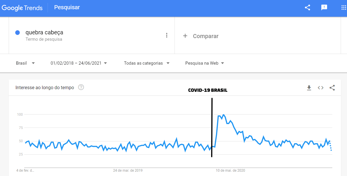 Segundo dados da Euromonitor International, os brinquedos analógicos e educativos passaram a ser os mais procurados durante a pandemia. As duas categorias que mais se destacaram refletem as novas rotinas familiares em tempos de distanciamento social: Brinquedos de construção, com alta de 26,68% e jogos de quebra-cabeças com 17,82%.