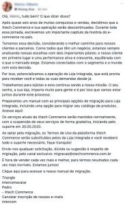Voltando ao encerramento das atividades da XTech, abaixo compartilhamos a imagem do informativo que está rodando entre a base de clientes da plataforma.